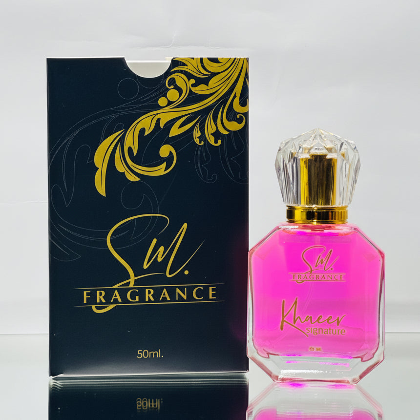 Khaeer is a fusion of tradition and modern depth. Inspired by Arabian richness, it carries warm, spicy notes with woody depth. A unique scent with lasting impact, best worn in evenings and cooler weather. Elegant, bold, and deeply enchanting.